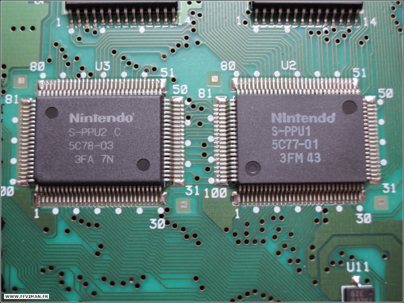 Repérez sur la carte mère, face avant, les puces graphique PPU, elles sont deux, au milieu et en bas du port cartouche; à coté du CPU. Indiqué U2